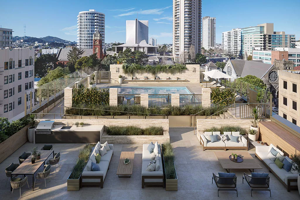 Coterie Cathedral Hills strive to nourish your well-being with its wellness programs and fitness activities. Luxury appliances fill the magnificent rooms of every room and facility in the building. Located in a wonderful location, residents can appreciate the iconic views of San Francisco through their windows or their expansive rooftop terrace. Their outdoor common area is spacious and built with outdoor heaters that allow for engaging activities all year round.