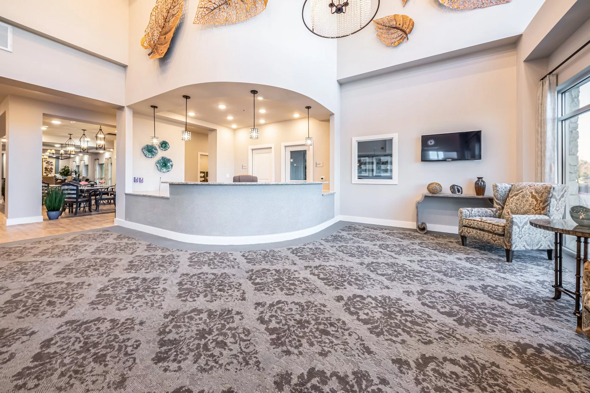The home takes pride in offering assisted living for seniors that goes above and beyond expectations. With a focus on enriching experiences and personalized care, residents are at the center of everything they do. From the breathtaking outdoor spaces that beckon residents to soak in the beauty of their surroundings, to the elegant and posh hallways that exude sophistication, every detail is thoughtfully designed. The community’s commitment to providing a serene and comfortable environment is evident in the exquisite covered areas that provide respite and relaxation, adorned with tasteful interior design.