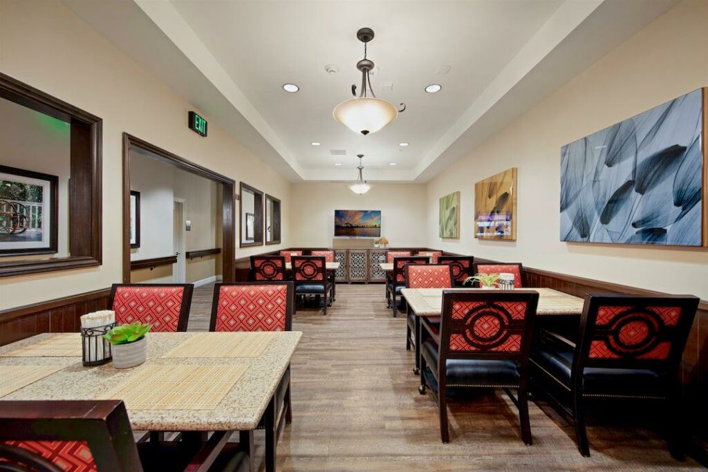 The luxurious senior living community houses state-of-the-art amenities such as their beautiful common areas, dining areas, bedrooms, and fitness center, indoor atrium, computer or media center, movie room, and meeting room; these are among the thoughtfully designed features included in the building that provide help for seniors to find everything they may need. The community encourages an active lifestyle for their residents so as to cultivate their mental and physical abilities– arts and crafts with art classes, golf course or putting green, Live Well programs, day trips and outings, and live dance or theatre programs.
