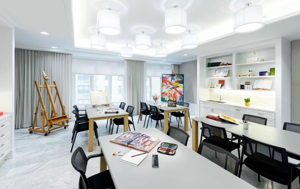 The tailored-fit care provided is designed to balance the holistic wellness plan for each resident to nurture a healthy lifestyle. Comprehensive amenities and 24/ care are a testament to the high-end community that is Coterie Hudson Yards; to name a few of the amenities highlights are the studio, 1 and 2-bedroom options, premium salon, fitness and yoga center, juice bar, club room, and cinema. Its services include a physical therapy suite with a physician, housekeeping and linen services for their cozy studio, 1 or 2-bedroom floor plans. From their beautifully designed interior apartments to world-class amenities, residents are guaranteed to feel extraordinary and important.